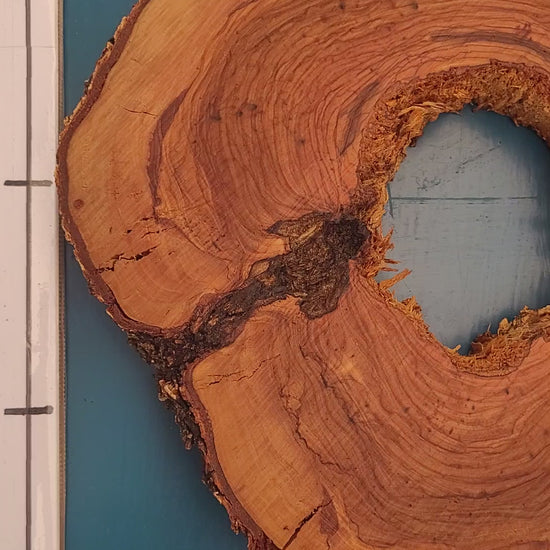 Rodaja sobria y versátil, con una silueta equilibrada y un veteado característico del olivo antiguo. Muy útil para bases de lámparas, carteles artesanales o decoración de pared.