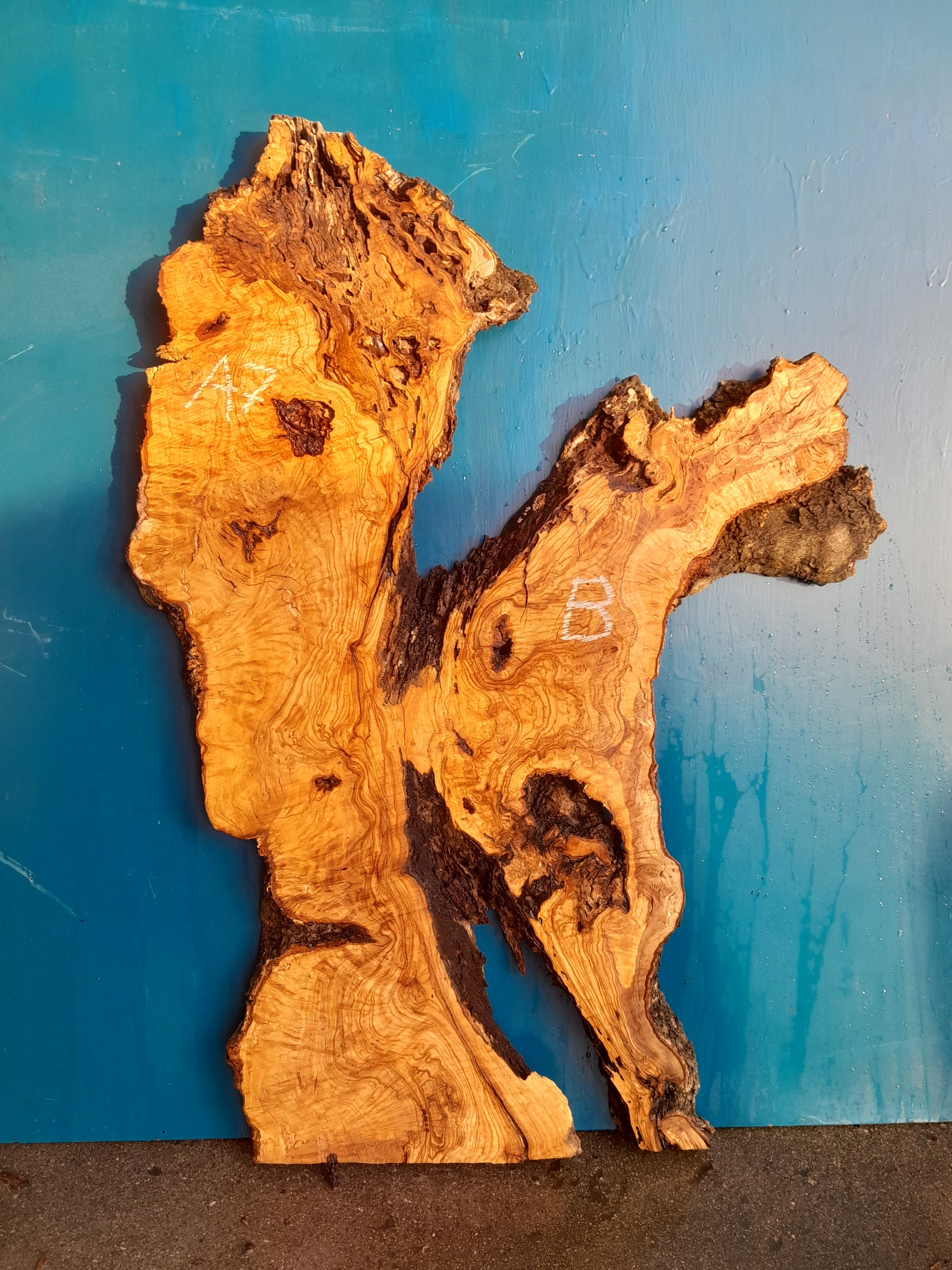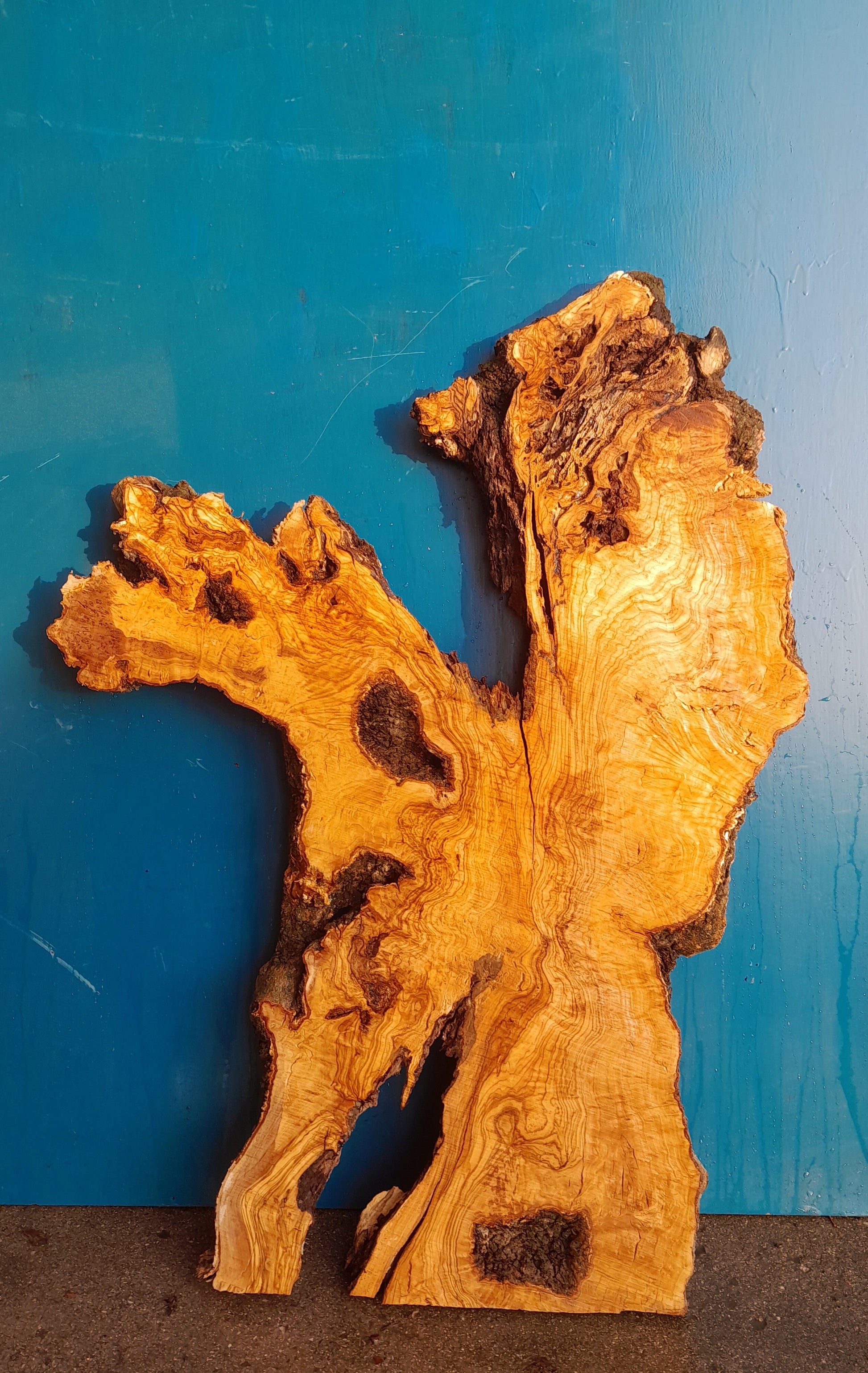 Tablero de olivo centenario con formas totalmente orgánicas y espectaculares vetas naturales.