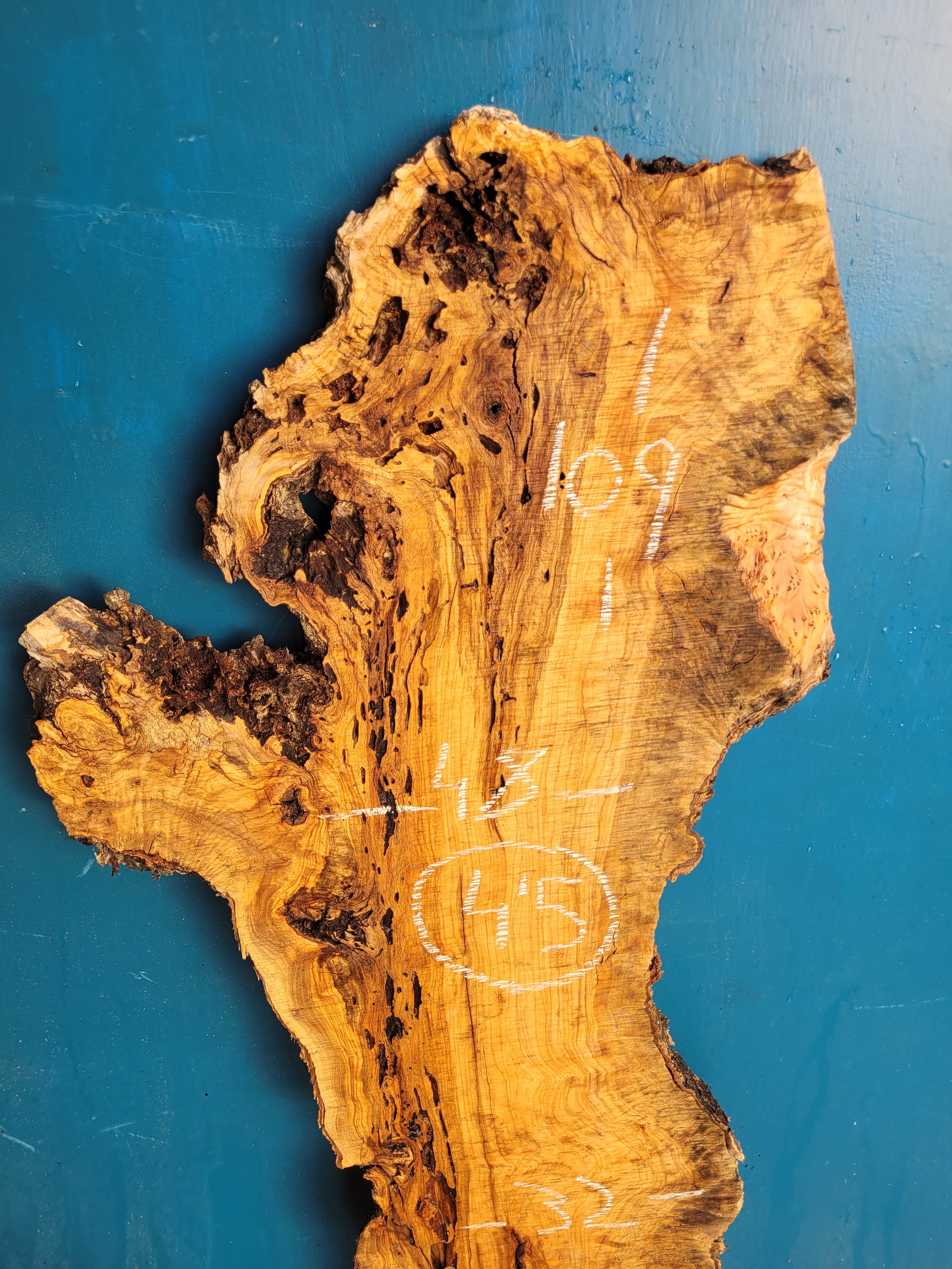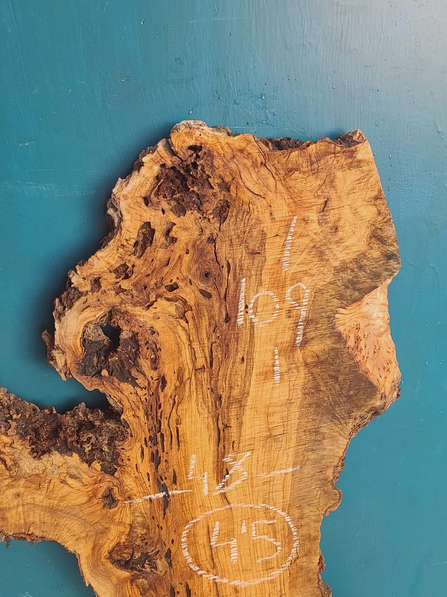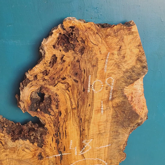 Tablón de olivo centenario con formas vivas, bordes irregulares y una veta muy expresiva. Perfecto para proyectos donde se busca una pieza protagonista, ya sea con resina o manteniendo su carácter natural.